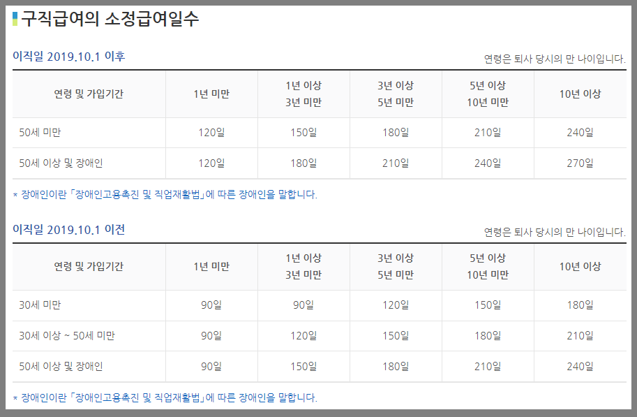 (단, 이직일이 2019.10.1 이전은 퇴직 전 평균임금의 50% × 소정급여일수)