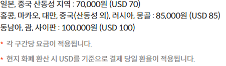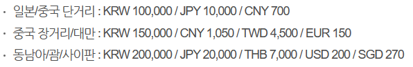 ※ 운송 요금은 한국출발편도 기준이다. 출발지 지불통화 기준으로 부과된다.